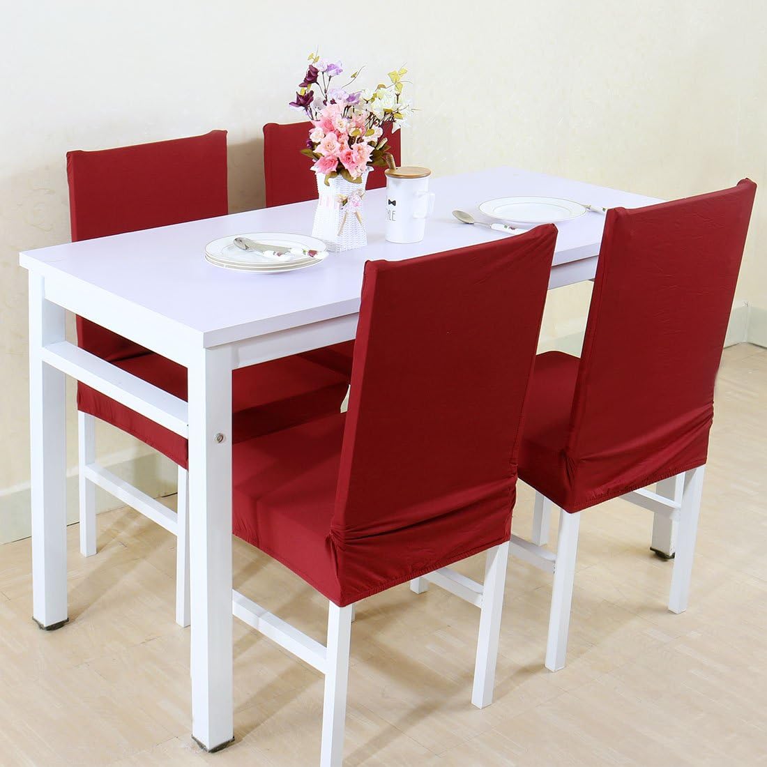 1,355 red dining chair covers products are offered for sale by suppliers on alibaba.com, of which chair cover accounts for 9%, living room sofas accounts for 1%, and sofa cover accounts for. Simple white slipcovers cover the chairs around a square wooden table, adding elegance to this dining room with cornflower blue walls and a coordinating area in this designer dining room, four side chairs with slipcovers in stonewashed linen offset the heaviness of the tall upholstered armchairs. Dress up the dining room or kitchen with slipcovers for your chairs. Sofas, dining and swivel chairs can easily be dressed up or down. What is the most common feature for red dining chairs? Select the department you want to search in. It takes a bit of fussing, but no sewing, and the results are elegant. Smiry velvet stretch dining room chair covers soft removable dining chair slipcovers set of 6, wine red. Measure the base of the dining room chair slipcovers to create the flap. 1 they are perfect for dinner parties, holidays or other special occasions where you'll be entertaining guests and want to give your. 2020 popular 1 trends in home & garden with dining room chair protector slipcover and 1. If you're going for warmer tones, choose a red or orange hued covering. Most of the dining room chairs upholstered wooden structure has seats that are connected to the seat with.
